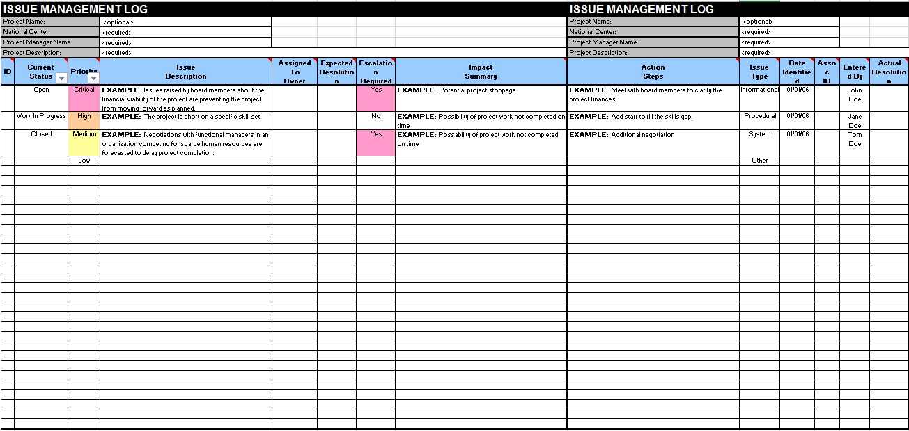 In project management the issue log is utilized to file problems, evaluate their effect on the project and build measures that can be brought to.